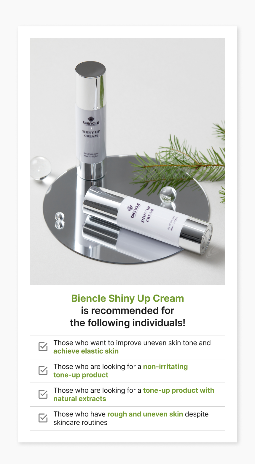 Unique patented raw materials are effective in moisturizing the skin This is a gentle tone-up cream that contains green tomato whitening ingredients to improve bright skin tone.