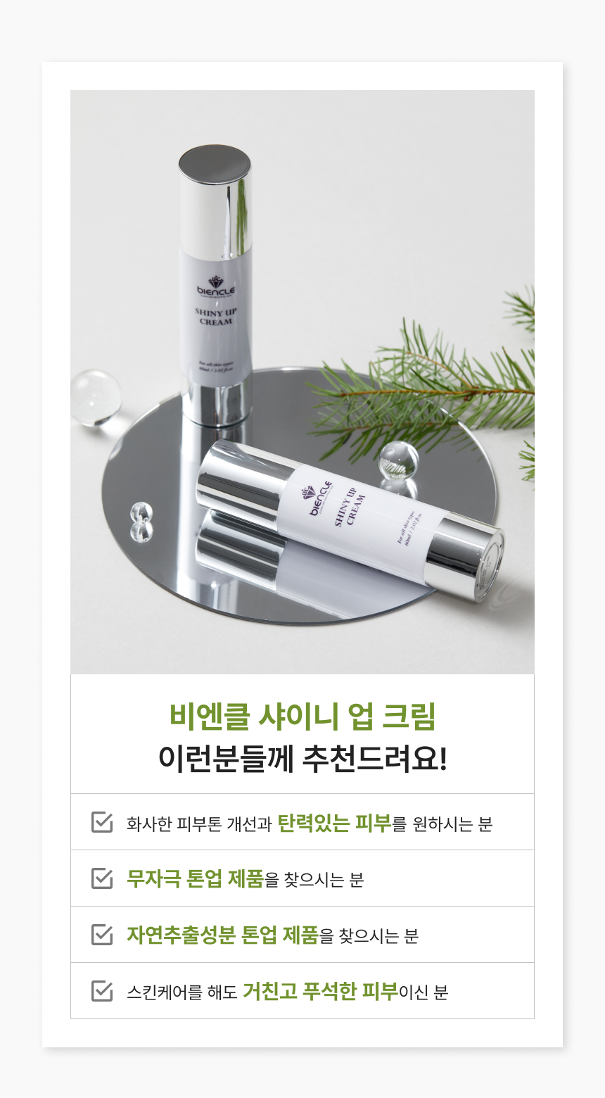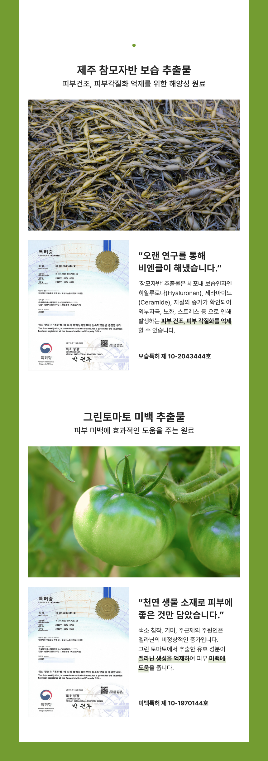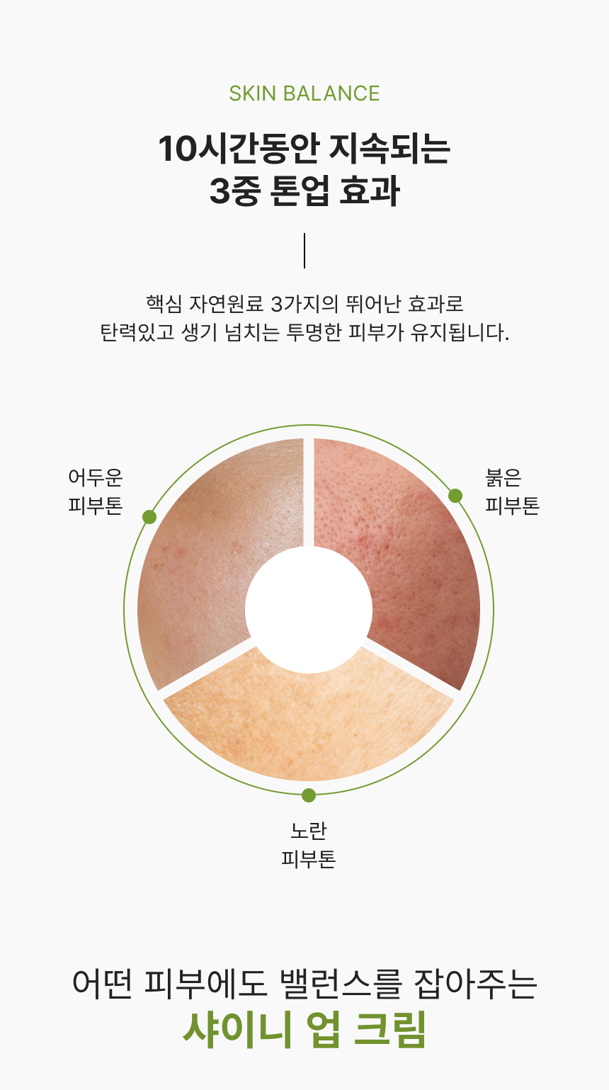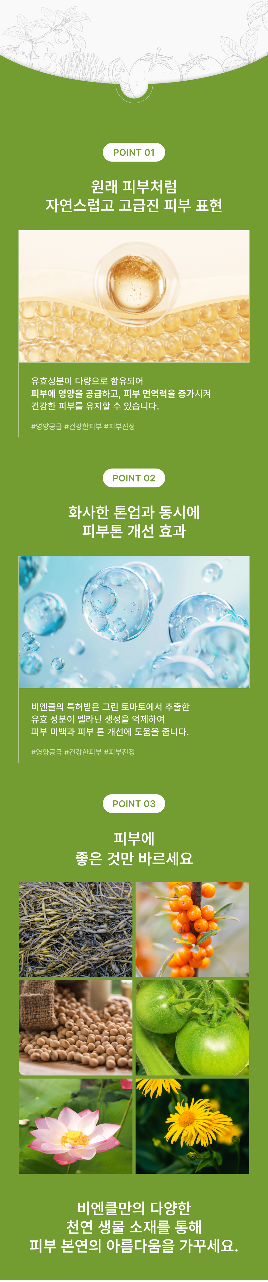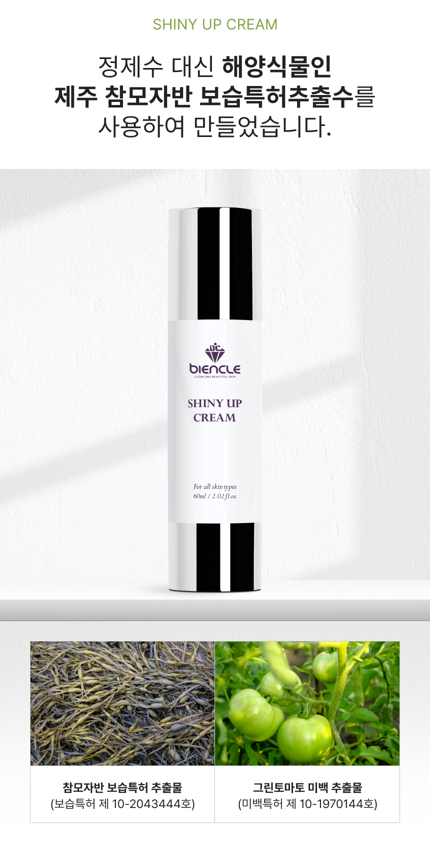 독자적인 특허 원료인 피부 보습에 효과적인 참모자반수와 화사한 피부 톤 개선을 위한 그린토마토 미백 원료를 담은 부드러운 톤 업 크림입니다.