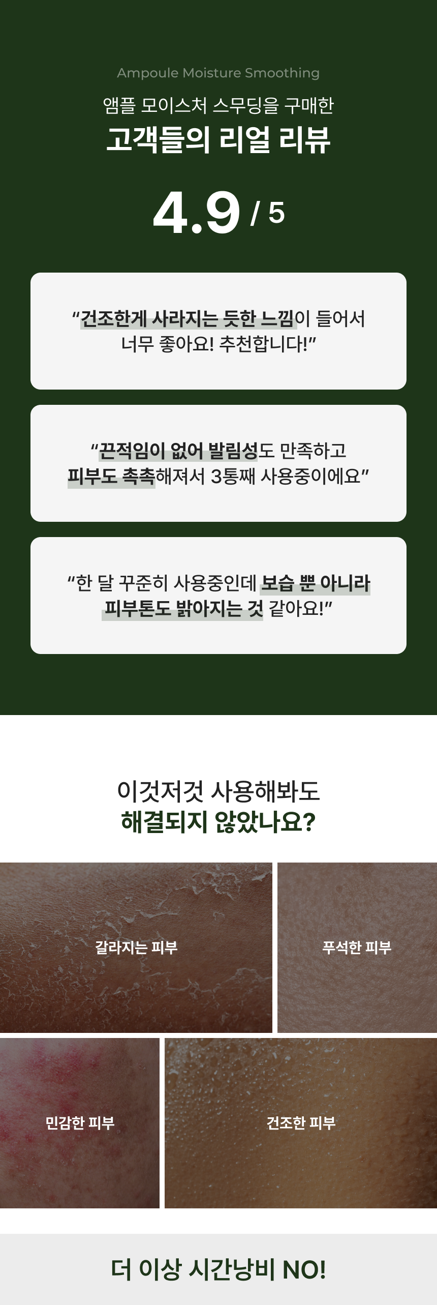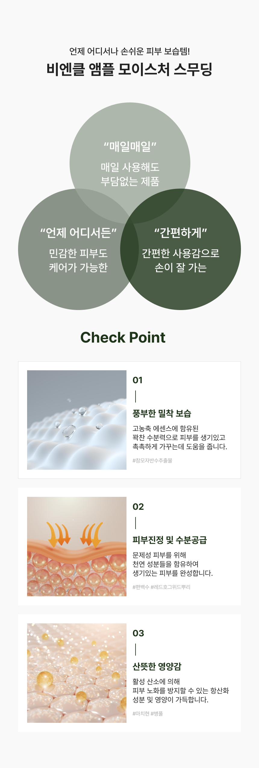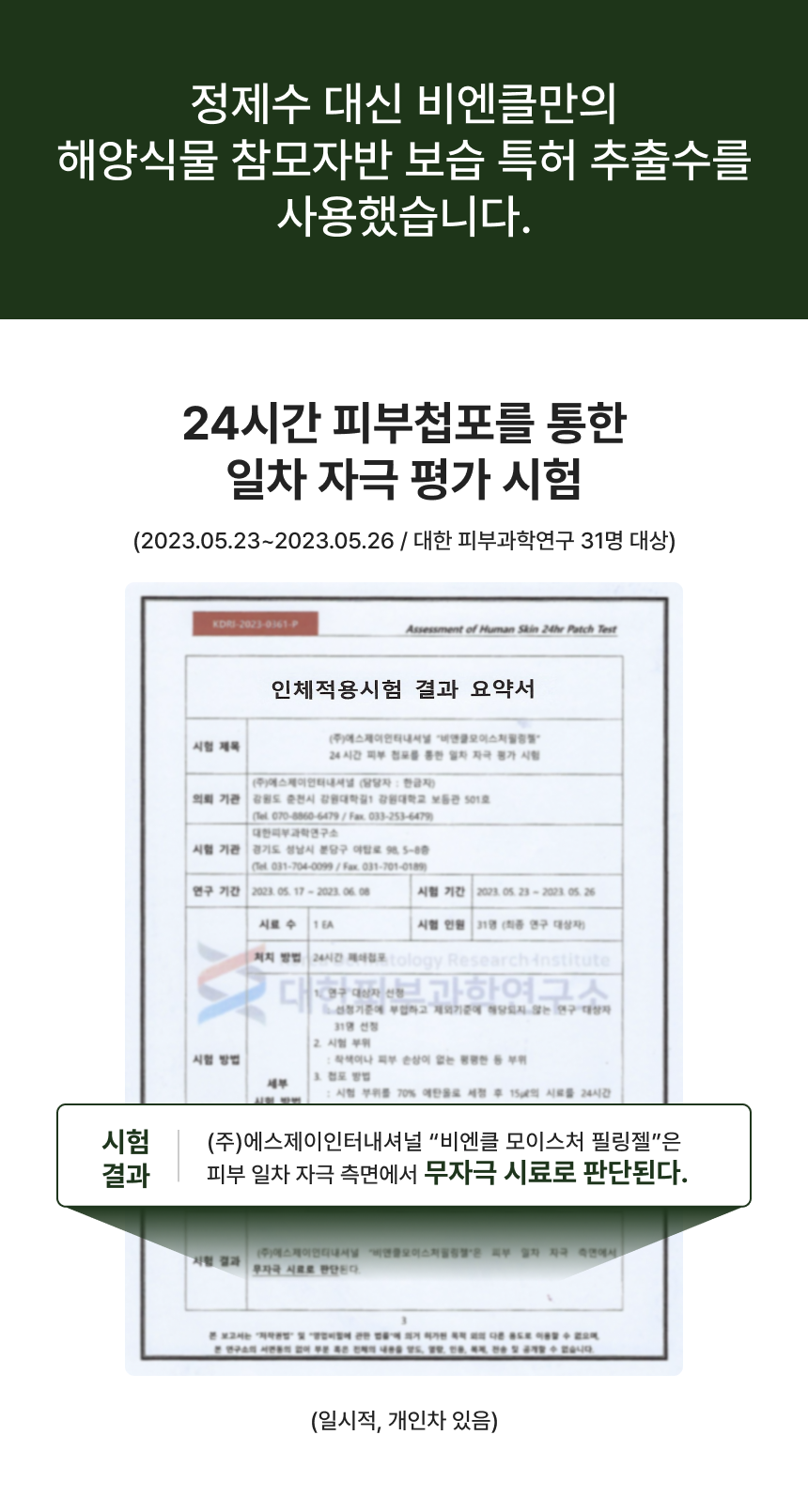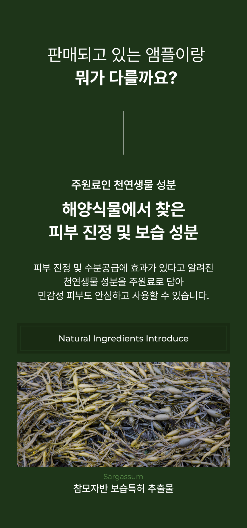 피부 보습에 효과적인 독자적 특허 원료 참모자반수와 피부를 화사하게 만들어주는 특허 성분을 함유하여 피부에 활력을 심어 드리며, 문제성 피부를 위한 성분을 함유하여 자신감 있고 생기 있는 피부를 완성해드립니다.